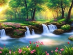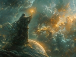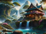 Commented on Night flora with a starry sky and a quaint cottage above the rocky peaks
