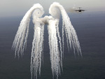 OK... These are two US C-17 planes, both firing infra-red decoys. The Angel Decoy was used in Iraq to protect against surface-to-air missiles, but we looks like fireworks, or a fake photo