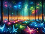 Commented on Glowing fireflies in a forest clearing in neon blue,neon pink and neon green