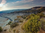 Commented on blacktop road on desert mountains